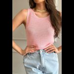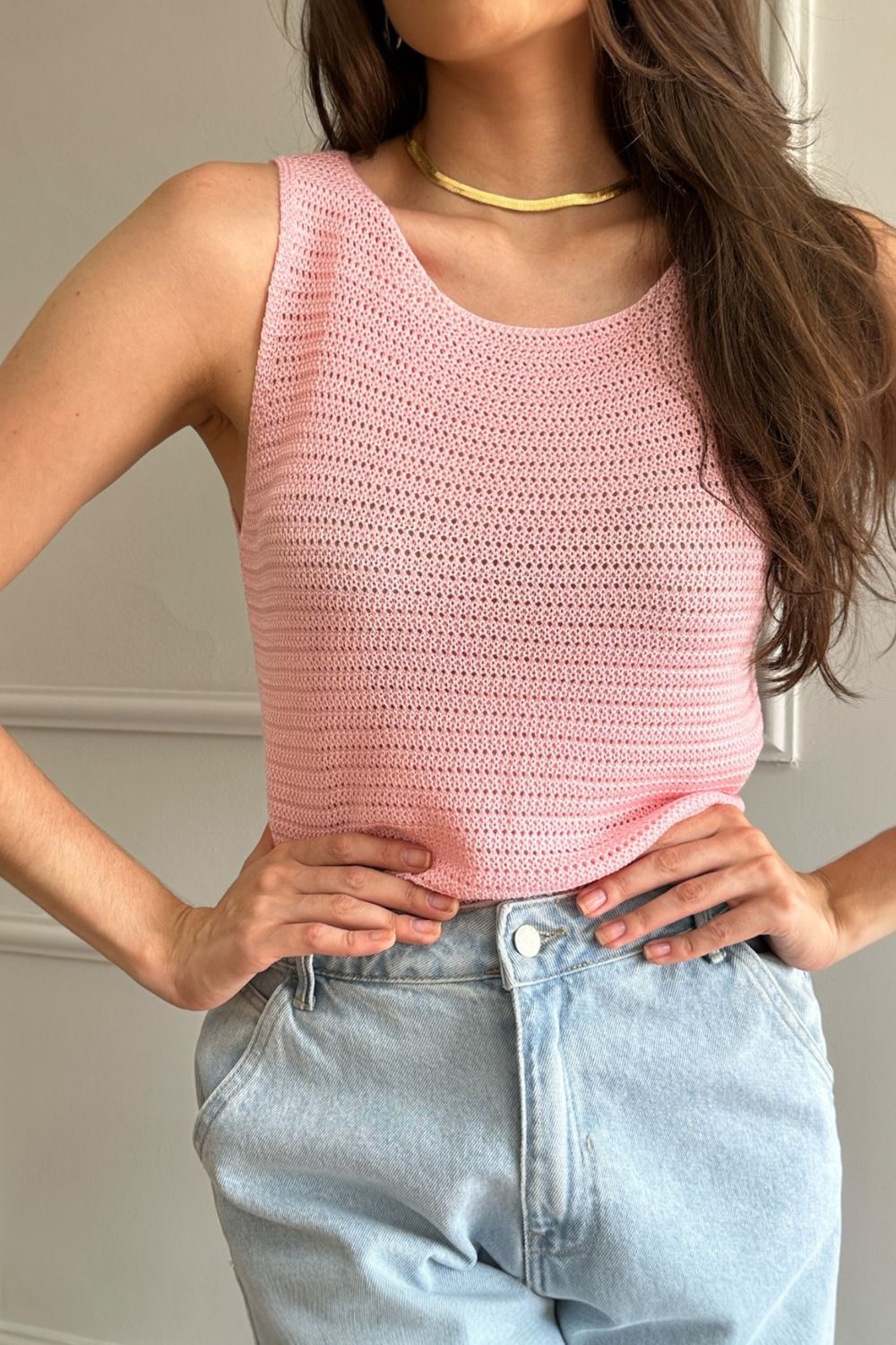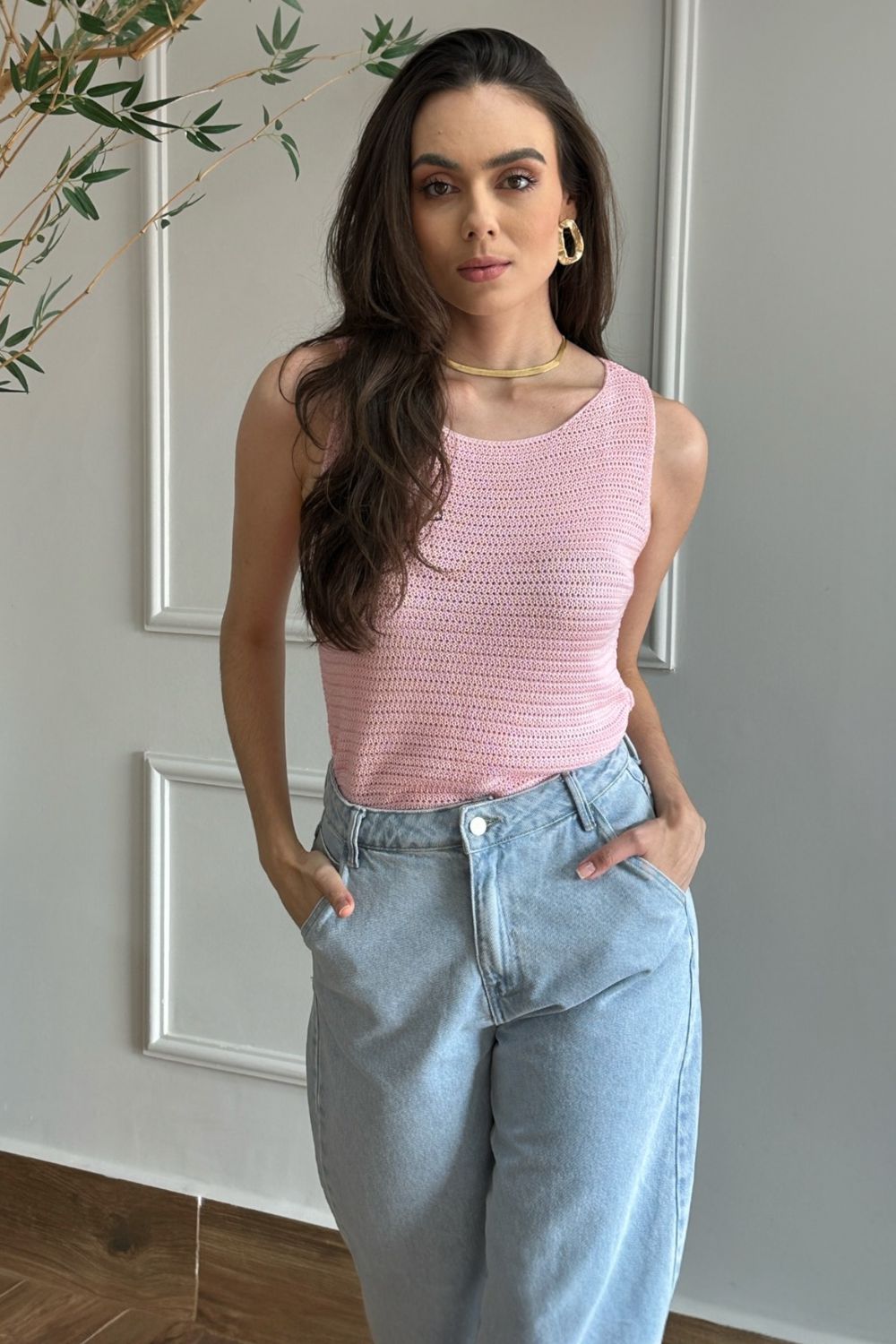 A Regata Ponto Crochê  é uma peça essencial para qualquer guarda-roupa de verão. Feita cuidadosamente em tricot lembrando um ponto crochê manual, oferece um design elegante ao mesmo tempo que proporciona conforto e respirabilidade. Esta regata é perfeita para ocasiões casuais ou para adicionar um toque chique a um visual mais sofisticado.
